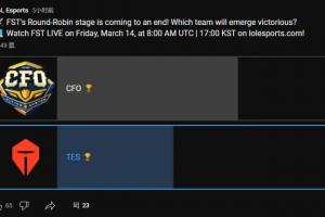 LOL赛事官方TESvsCFO投票:仅39%的粉丝认为TES将击败CFO