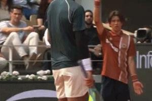此前有球员类似举动被取消资格,在2020年德约在比赛中用球拍挥球,不小心击中了人。