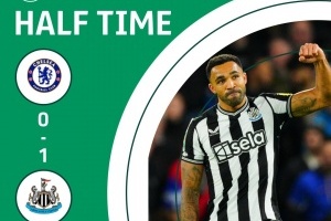 直播吧12月20日讯 北京时间12月20日04:00,英联杯1/4决赛,切尔西坐镇主场斯坦福桥球场迎战纽卡斯尔联的比赛,上半场巴迪亚西勒失误威尔逊单刀破门,恩佐伤退,半场结束,切尔西0-1纽卡。