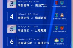 📅 2024中国足球协会超级联赛「南通支云」赛程出炉!