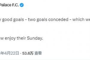 直播吧4月22日讯 本轮英超,水晶宫坐镇主场5-2大胜西汉姆,赛后水晶宫官推模仿诺丁汉森林的战报。