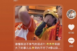 照片中的这位小哥,观看泰山队比赛时用手捂着双眼,在现场激动落泪。对此,王大雷表示:“小哥你好,赛后看到视频里的你我很感动,很感谢你以最淳朴的方式支持球队!我想以我个人最真诚的方式感谢你对泰山队的支持!”