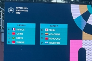 直播吧5月26日讯 巴黎残奥会盲人足球项目分组公布,中国男子盲人足球队与东道主法国、巴西、土耳其同组,小组赛将于9月1日至9月3日进行。