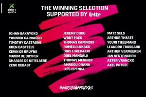 后卫:卡斯塔涅(富勒姆)、德库耶佩(布鲁日)、德巴斯特(安德莱赫特)、法斯(莱斯特城)、穆尼耶(特拉布宗体育)、泰特(雷恩)、维尔通亨(安德莱赫特)、维特塞尔(马竞)