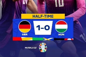 直播吧6月20日讯 北京时间6月20日凌晨0:00,欧洲杯小组赛A组第二轮,德国对阵匈牙利。上半场京多安助攻穆西亚拉进球,索博斯洛伊任意球造险,罗兰-绍洛伊头球破门因越位被吹,德国队暂1-0匈牙利。