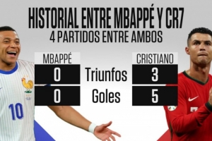 据统计,C罗与姆巴佩此前一共交手4次,C罗3胜1平打进5球,姆巴佩0胜0进球。