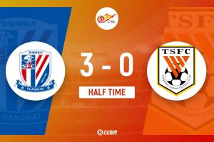 半场结束,上海申花暂3-0山东泰山。