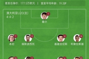 澳大利亚首发:1-霍尔、7-本尼、3-埃斯波西托、4-基基亚尼斯、14-利索拉斯基、10-巴多拉托、2-因塞拉、6-恩斯特勒、20-阿戈斯蒂、19-穆萨-图雷、9-约万诺维奇