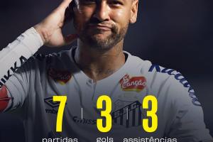 内马尔免签桑托斯1个月以来,7场比赛3球3助,已追平在新月的出场数。