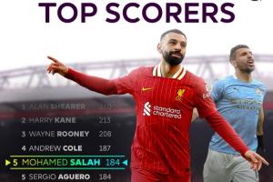 本赛季英超开始前,萨拉赫的英超历史总进球数为157球,排在英超历史总射手榜的第11位。而目前赛季还未结束,萨拉赫已经冲到了英超历史总射手榜的并列第5位,甚至还有望超越第4名的科尔!