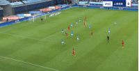 直播吧06月30日讯 新鹏城vs海港第25分钟,蒯纪闻后脚跟钻防守球员小门人球分过,小角度射门被扑出。