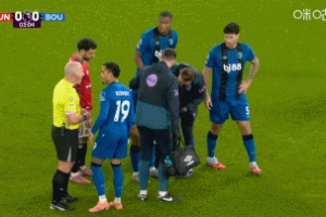 直播吧12月16日讯 英超第16轮,曼联主场迎战伯恩茅斯,比赛第5分钟,亚当斯封堵库尼亚射门时受伤,被斯科特换下。